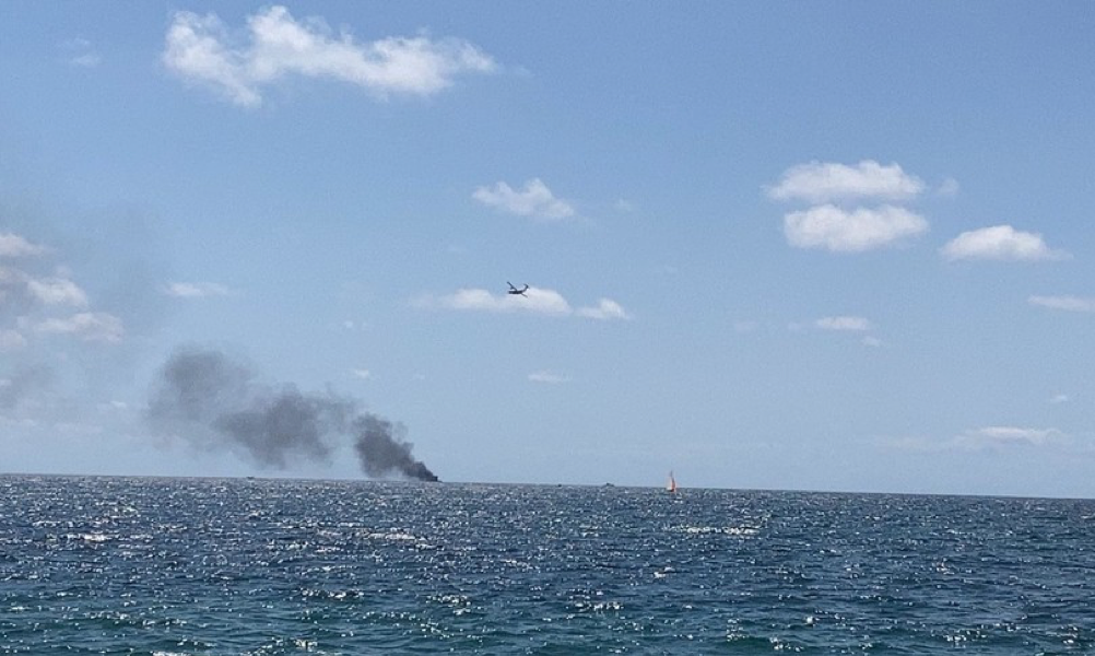 L’incidente si è verificato mentre una motovedetta della Guardia di Finanza lo stava rimorchiando, forse a causa di una fuoriuscita di carburante.