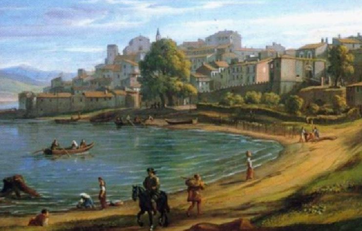 Anguillara vista dagli occhi di un grande artista come Gaspard van Wittel (Amersfoort, 1653 – Roma -13 settembre 1736), più conosciuto come il Vanvitelli. Uno scenario di un’Anguillara settecentesca dove prevalentemente troneggiano l’Arco di Piazza, le mura che degradano a La Valle e il grande olmo in piazza del Lavatoio.