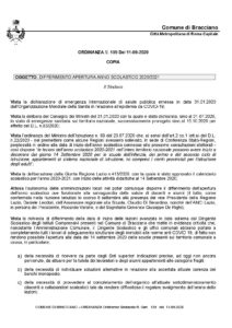 Si pubblica l’ordinanza del Sindaco di Bracciano sul differimento dell’inizio dell’attività didattica di tutti i plessi scolastici ( ad eccezione delle Sezioni della Scuola comunale dell’infanzia “Pasqualetti” ) presenti sul territorio comunale al 24 Settembre 2020.