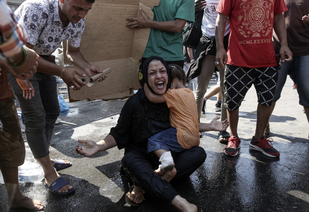 Lacrimogeni e idranti contro pietre. Poliziotti in tenuta antisommossa contro disperati costretti a contendersi perfino una bottiglia d’acqua ma proprio per questo decisi a tutto pur di lasciare l’isola di Lesbo.