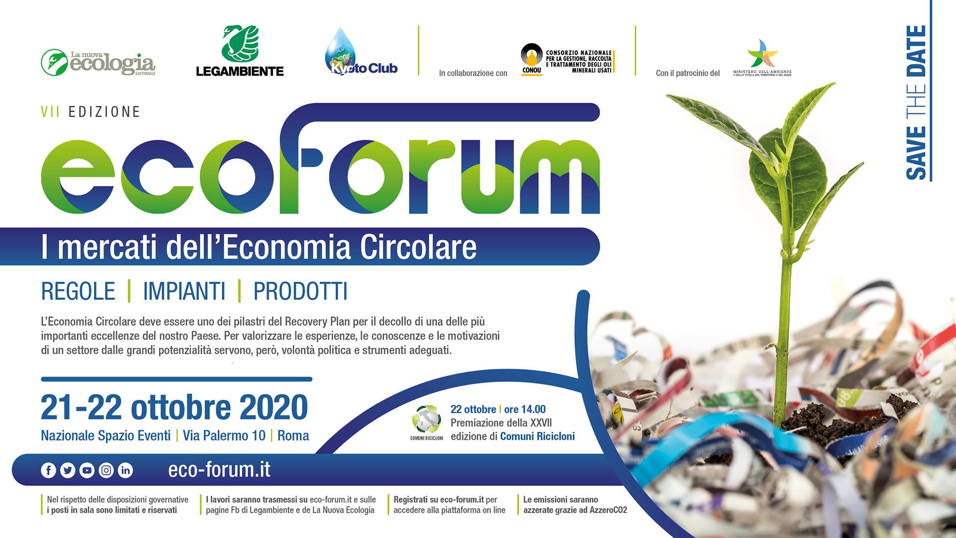 Questi sono i temi al centro della VII edizione della Conferenza Nazionale EcoForum, organizzata da Legambiente, Nuova Ecologia e Kyoto Club in collaborazione con Conou e col patrocinio del Ministero dell’Ambiente e della Tutela del Territorio e del Mare.