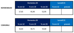 Dati di affluenza alle urne pubblicati dal Ministero degli Interni