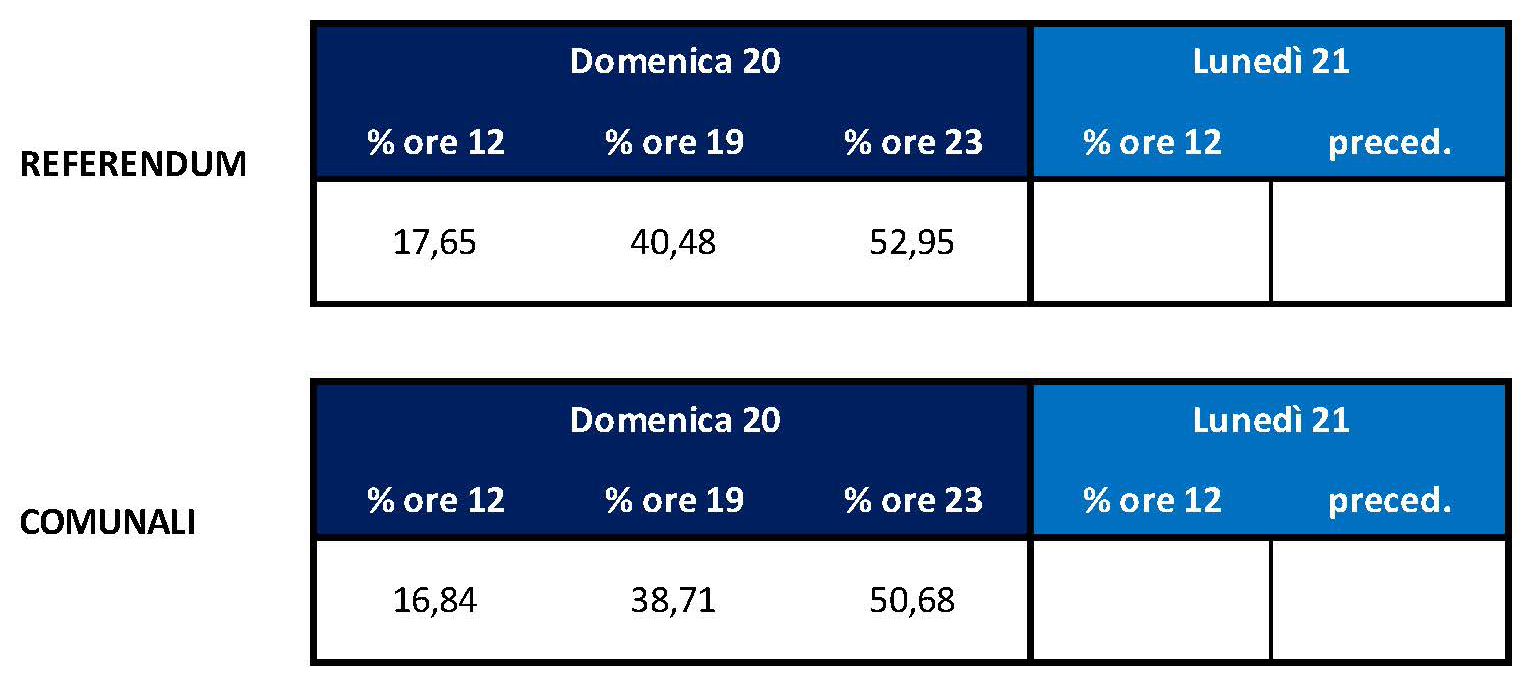 Dati di affluenza alle urne pubblicati dal Ministero degli Interni