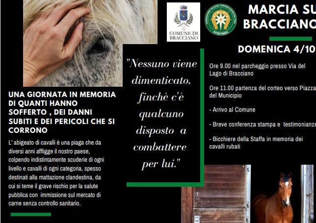 Marcia su Bracciano in Memoria dei cavalli rubati. Domenica 4 ottobre