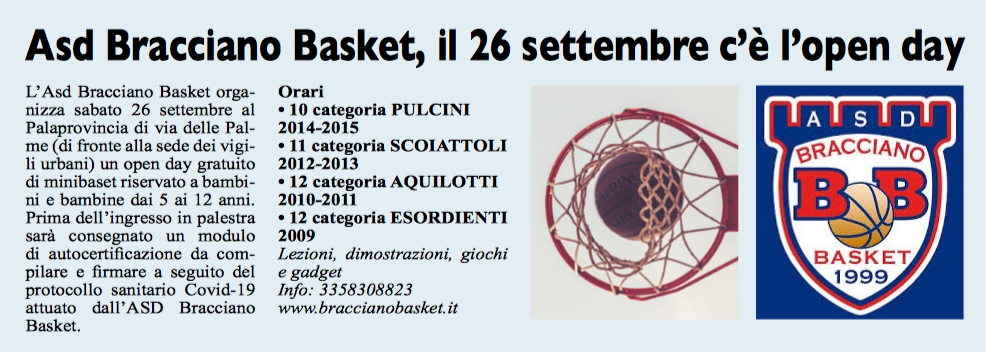 ASD BRACCIANO BASKET: Open Day il 26 settembre