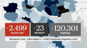 Coronavirus, il bollettino di oggi, 2 ottobre: 2499 casi e 23 morti