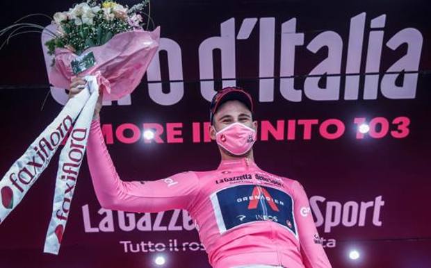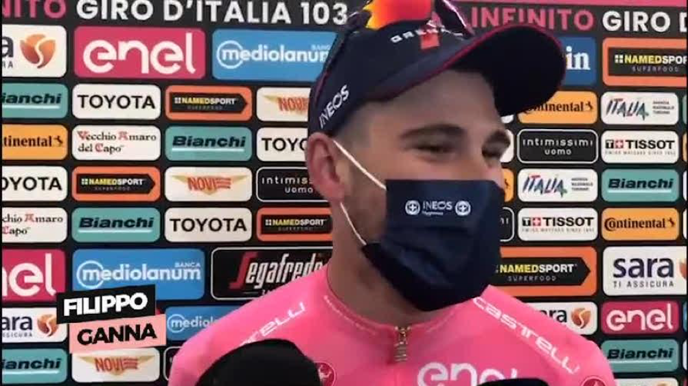 Mentre il corridore della Ineos continua ad esprimere la propria gioia, sotto il simbolo del primato si intravede il colletto dell’iride: “Dal Mondiale sono uscito forte e domani sarò alla partenza con la maglia rosa. E pensare che fino a qualche anno fa la vedevo in televisione…”. E sul percorso insidioso: “La parte che scendeva era davvero tosta, diventava difficile guidare la bicicletta. Ma sono rimasto calmo e ho portato questo fantastico mezzo fino al traguardo. Spero di riuscire a conservare la maglia nei prossimi giorni”.