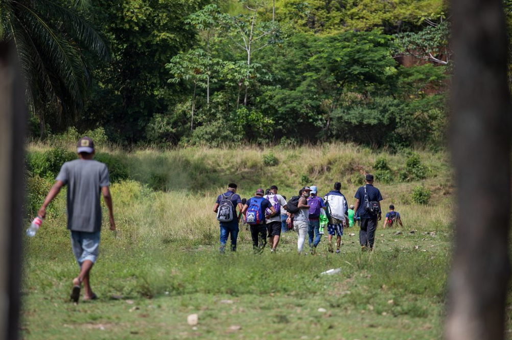 L’imponente carovana di migranti è avanzata divisa in piccoli gruppi che si sono dispersi lungo il loro viaggio verso il confine di Corinto. Omoa, Cortés, 1° ottobre 2020.