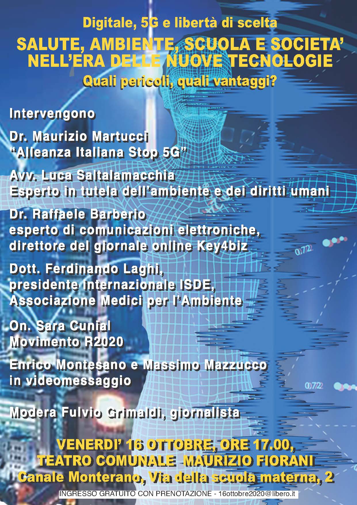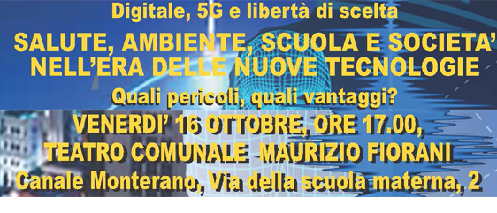 Convegno a Canale, 16 Ottobre: 5G, libertà e scelta – salute, ambiente, scuola e società