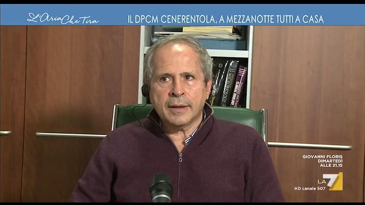 “Faccio fatica anch’io a cogliere il razionale di questo particolare, però evidentemente ci sono delle ragioni che ci sfuggono”. È quanto ha detto il microbiologo Andrea Crisanti a L’aria che tira, in onda su La7, commentando le nuove misure restrittive contenute nel nuovo Dpcm, tra cui lo stop agli sport di contatto, come il calcetto tra amici. Una dichiarazione tra il serio e l’ironico, che ha strappato un sorriso alla conduttrice del programma, Myrta Merlino.