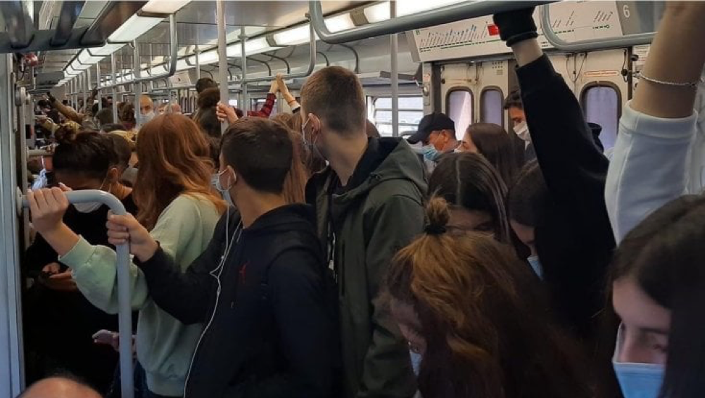 E c’è ben poco da dire, perché sono le immagini che parlano: passeggeri che, come anche prima del Covid-19, sono stretti sui mezzi come sardine. L’unica differenza? La mascherina, solo strumento anti-contagio.