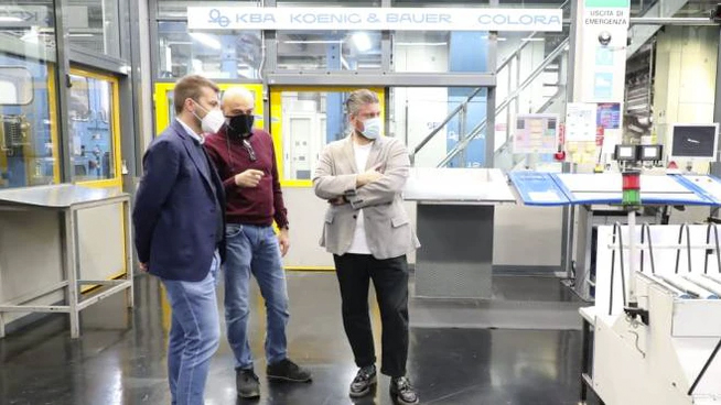 Dopo aver salutato il direttore Michele Brambilla, il condirettore Beppe Boni e il caporedattore Valerio Baroncini, il primo cittadino imolese ha fatto un giro all’interno dello stabilimento di via Mattei osservando da vicino il lavoro delle rotative.