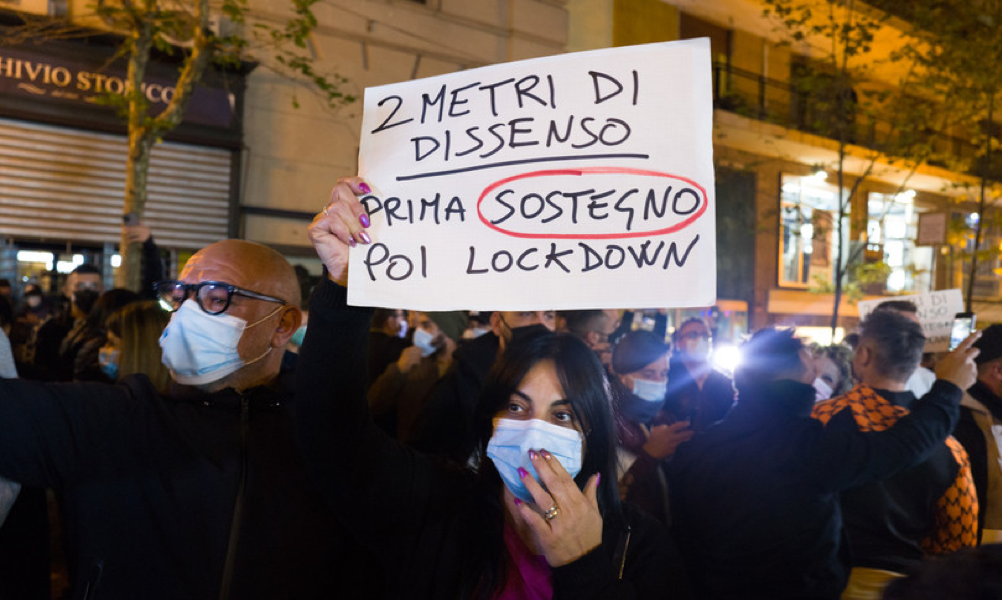 Non risparmia nessuna regione italiana il clima di protesta scattato dopo il nuovo Dpcm, in vigore da oggi, per cercare di contenere l’aumento dei casi di Covid 19. Manifestazioni e cortei, per contestare i decreti del Governo, ma anche quelli delle Regioni e dei sindaci, si registrano ovunque, e in alcune città non sono mancati momenti di tensione e anche scontri tra manifestanti e forze dell’ordine, come successo a Napoli.