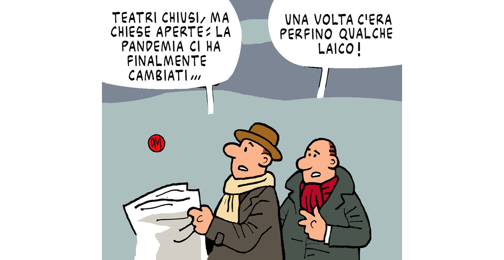 HomeSocietà Teatri chiusi, chiese aperte, francamente non si capisce la logica 27/10/2020 0 834 E-mailTwitterWhatsAppFacebookPinterestLinkedinReddItTumblrTelegramViberStampa da Il Manifesto – – – – – – – – – Spesso una semplice vignetta dice molte più cose di un lungo articolo Tagschiese e teatriReligione Condividere E-mailTwitterWhatsAppFacebookPinterestLinkedinReddItTumblrTelegramViberStampa Articolo precedenteCoronavirus. Primo: evitare lo tsunamiArticolo successivoCovid. Francia, “100mila contagi al giorno”. Il vaccino di Oxford funziona su anziani Ultimi articoli Cultura Medusa: la colpa di essere donna Cultura “Le Donne e l’Armi”: calendario storico 2026 che racconta l’orgoglio delle donne Politica Strada provinciale Braccianese-Claudia: appello dei Sindaci di Allumiere, Canale Monterano, Manziana e Tolfa Società Appuntamenti di Danza con il Mandala Center Primo piano CNESC E FORUM NAZIONALE SERVIZIO CIVILE SULLE DICHIARAZIONI DEL MINISTRO CROSETTO Carica altri