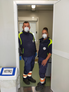 Da poco più di un mese il coordinatore del Gruppo Comunale Protezione Civile di Bracciano Michele Botta, insieme ai volontari Barbara Messeca, Roberto Botta, Vincenzo Fenile e Paolo Tundo, prestano servizio dal lunedì al sabato presso l’area test COVID-19 dell’ospedale Padre Pio di Bracciano aiutando lo staff medico per seguire le tante persone che ogni giorno vi si recano per eseguire i tamponi.