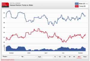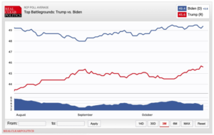 dall’altra, la campagna elettorale ‘erratica’ di Biden che rimane in testa nei sondaggi ma vede il vantaggio assottigliarsi
