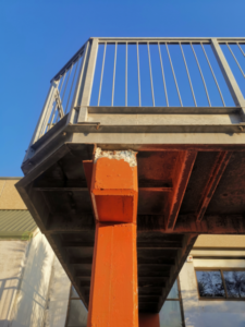in allegato alla presente invio le foto relative alla cauta di un pezzo di cemento dalla trave di supporto alle scale di accesso alla palestra.
