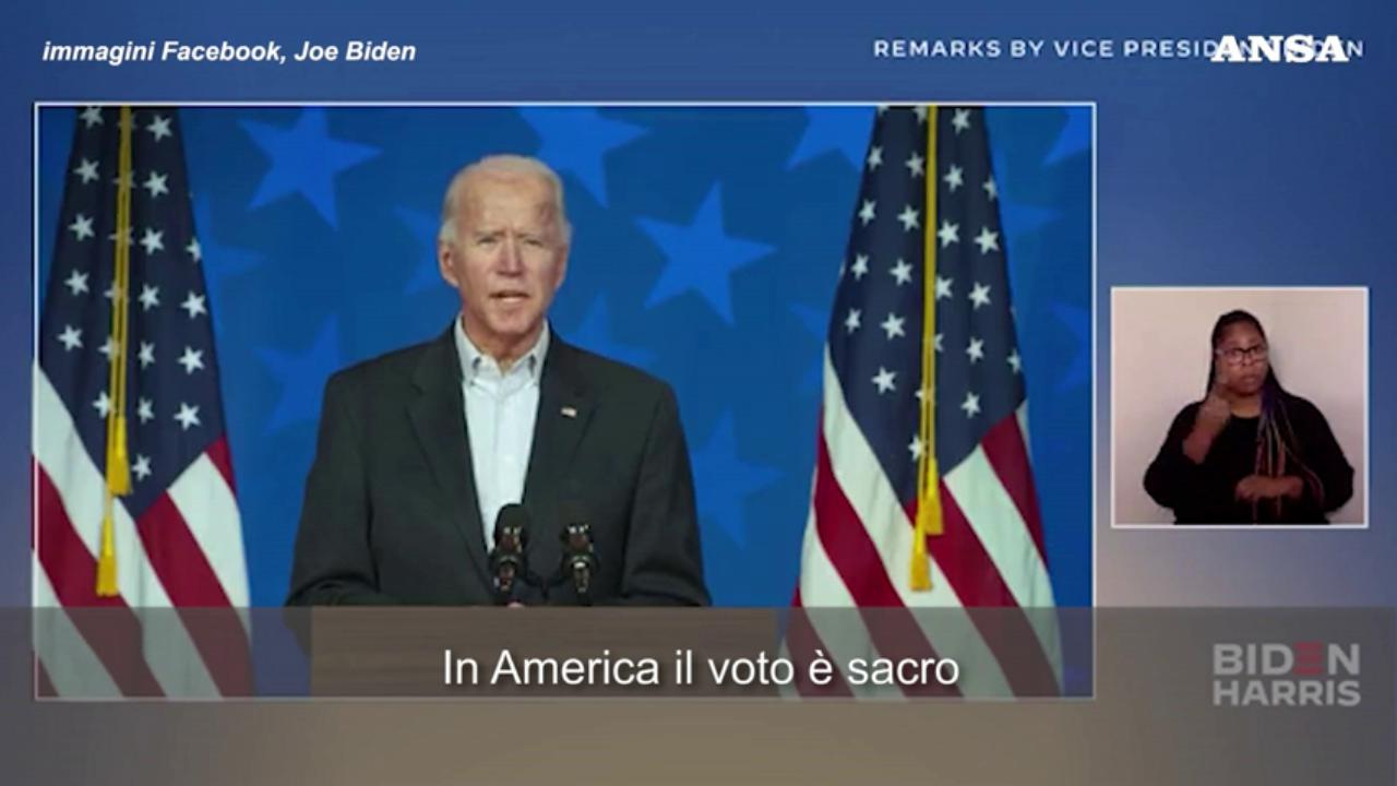 Il candidato democratico Joe Biden: “Chiedo a tutti di mantenere la calma, il conteggio è in corso, e sapremo presto” ha detto a Wilmington, Delaware.