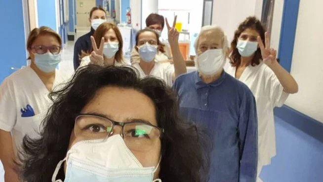 Regina Cerrato, infermiera del reparto, non appena visto lo striscione, ha aperto le finestre per rassicurare i ragazzi: “Tranquilli il nonno sta bene. È così solo per oggi, da domani quando avremo creato i percorsi sicuri potrete venire a trovarlo”. E poi ha mandato loro una foto del nonno con gli altri infermieri.