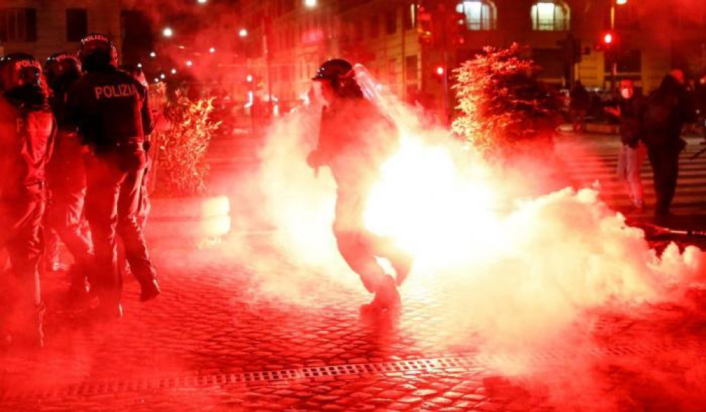 Andremo poi al servizio, fermiamoci un attimo sulla manifestazione. Chi erano a manifestare? Gilet arancione con in testa l’ex generale Pappalardo e i fascisti di Forza Nuova. Naturalmente nel servizio della Rai che Forza Nuova è una organizzazione fascista non si dice proprio.