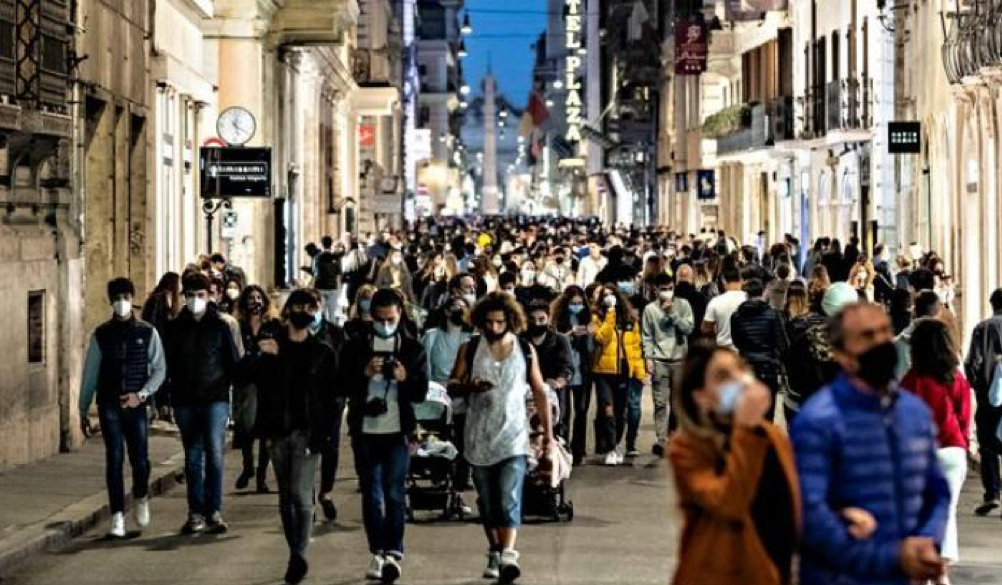 Le immagini vengono direttamente dal centro di Roma che nelle ore immediatamente precedenti al coprifuoco delle 22, si ritrova letteralmente invasa di gente che passeggia in via del Corso, strada centrale della Capitale.