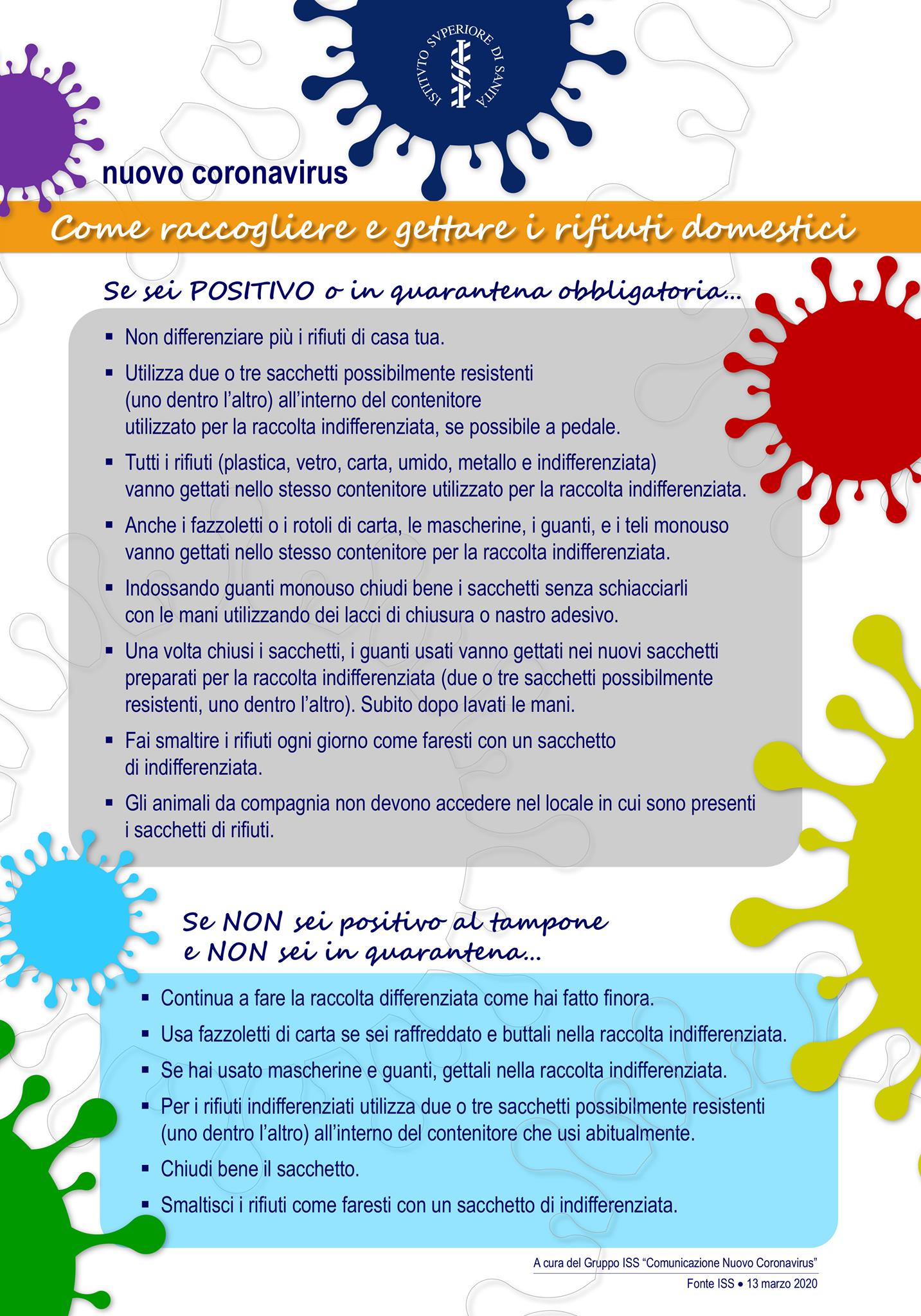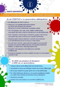Si ricorda che, al fine di espletare al meglio e in sicurezza il servizio di raccolta porta a porta dei rifiuti, le persone positive e/o in isolamento domiciliare dovranno seguire le direttive contenute nell’immagine.