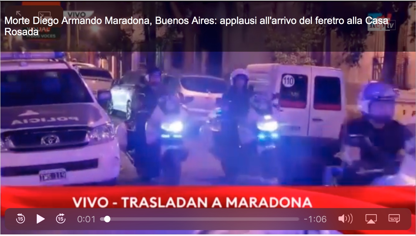 Dunque un tormentato ultimo saluto a Diego Armando Maradona, scomparso nel pomeriggio italiano di ieri a causa di una “insufficienza cardiaca acuta”, secondo quanto emerso dai risultati preliminari dell’autopsia, riportati dal quotidiano argentino ‘Clarìn’. L’insufficienza sarebbe stata generata da un “edema polmonare acuto”.