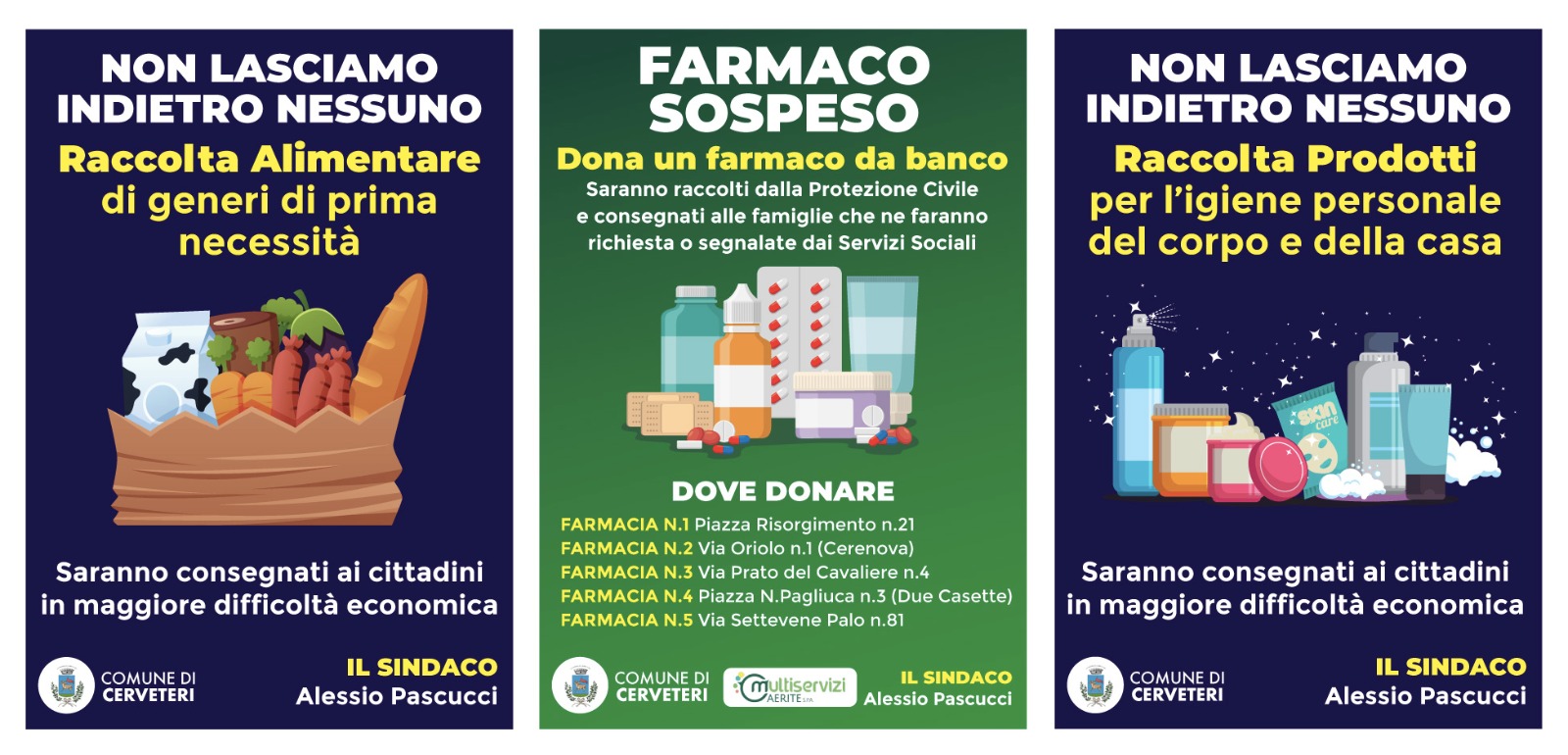recandosi in una delle cinque farmacie comunali di Cerveteri, sarà possibile donare uno o più farmaci da banco, da mettere a disposizione delle famiglie più in difficoltà che ne faranno richiesta. IN LOCANDINA LE CINQUE FARMACIE