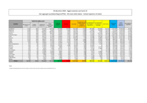 sono stati fatti 3.180 tamponi: 1.599 nel percorso nuove diagnosi e 1.581 nel percorso guariti. I positivi sono 421 nel percorso nuove diagnosi.