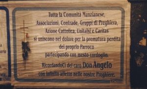 Giorgia: “Don Angelo lo conobbi meglio durante un’estate tramite il Grest, un centro estivo creato da lui stesso, aperto a tutti i bambini e ragazzi delle medie. Lo ricordo come una persona dalle mille risorse, energetica, sempre disponibile a dare una mano al prossimo e di buon cuore. Inoltre era dotato di una leggerezza, mai superficiale, coinvolgente: aggiungeva sempre quella battuta scherzosa che ti strappava uno o più sorrisi. Don Angelo era veramente un angelo, che ha dato tanto alla comunità manzianese, e ora che non è più fisicamente tra noi, rimarrà vivo in eterno nei nostri cuori.”