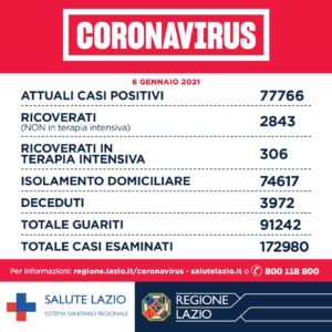 “OGGI SU OLTRE 15 MILA TAMPONI NEL LAZIO (+2.285) SI REGISTRANO 2.007 CASI POSITIVI (+288), 37 I DECESSI (-35) E +1.512 I GUARITI. AUMENTANO I CASI CHE TORNANO SOPRA QUOTA 2 MILA, MENTRE DIMINUISCONO I RICOVERI, I DECESSI E LE TERAPIE INTENSIVE. IL RAPPORTO TRA POSITIVI E TAMPONI E’ A 13% MA SE CONSIDERIAMO ANCHE GLI ANTIGENICI LA PERCENTUALE SCENDE A 5%. I CASI A ROMA CITTA’ TORNANO A QUOTA 900. Il valore RT sale ma rimane di poco sotto l’1. Prevediamo un peggioramento della curva. Oggi abbiamo un’onda che si alza come era prevedibile ed occorre massimo rigore e cautela. Nella Asl Roma 1 sono 503 i casi nelle ultime 24h e si tratta di casi isolati a domicilio o con link familiare o contatto di un caso già noto. Si registrano sei decessi di 48, 49, 68, 71, 78 e 79 anni con patologie. Nella Asl Roma 2 sono 235 i casi nelle ultime 24h e si tratta di casi isolati a domicilio o con link familiare o contatto di un caso già noto. Centotre sono i casi su segnalazione del medico di medicina generale. Si registrano dodici decessi di 62, 66, 72, 73, 76, 80, 81, 82, 85, 87, 89 e 94 anni con patologie. Nella Asl Roma 3 sono 230 i casi nelle ultime 24h e si tratta di casi isolati a domicilio o con link familiare o contatto di un caso già noto. Otto casi sono ricoveri. Si registrano quattro decessi di 66, 78, 80 e 96 anni con patologie. Nella Asl Roma 4 sono 56 i casi nelle ultime 24h e si tratta di casi isolati a domicilio o con link familiare o contatto di un caso già noto. Nella Asl Roma 5 sono 125 i casi nelle ultime 24h e si tratta di casi isolati a domicilio o con link familiare o contatto di un caso già noto. Si registra un decesso 92 anni con patologie. Nella Asl Roma 6 sono 207 i casi nelle ultime 24h e si tratta di casi isolati a domicilio o con link familiare o contatto di un caso già noto. Si registrano cinque decessi di 77, 79, 82, 85 e 92 anni con patologie. Nelle province si registrano 651 casi e sono nove i decessi nelle ultime 24h. Nella Asl di Latina sono 312 i nuovi casi e si tratta di casi isolati a domicilio o con link familiare o contatto di un caso già noto. Si registrano cinque decessi di 68, 74, 92, 97 e 98 anni con patologie. Nella Asl di Frosinone si registrano 209 nuovi casi e si tratta di casi isolati a domicilio, contatti di un caso già noto o con link familiare. Si registrano tre decessi di 56, 75 e 87 anni con patologie. Nella Asl di Viterbo si registrano 44 nuovi casi e si tratta di casi isolati a domicilio o con link familiare o contatto di un caso già noto. Si registra un decesso di 86 anni con patologie. Nella Asl di Rieti si registrano 86 casi e si tratta di casi isolati a domicilio o con link familiare o contatto di un caso già noto” commenta l’Assessore alla Sanità della Regione Lazio, Alessio D’Amato.