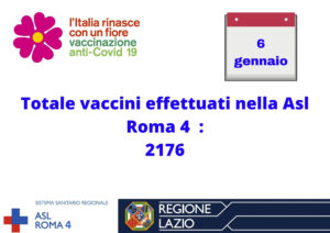 Le vaccinazioni effettuate finora, 6 Gennaio 2021, nella asl Roma 4 sono state 2176.