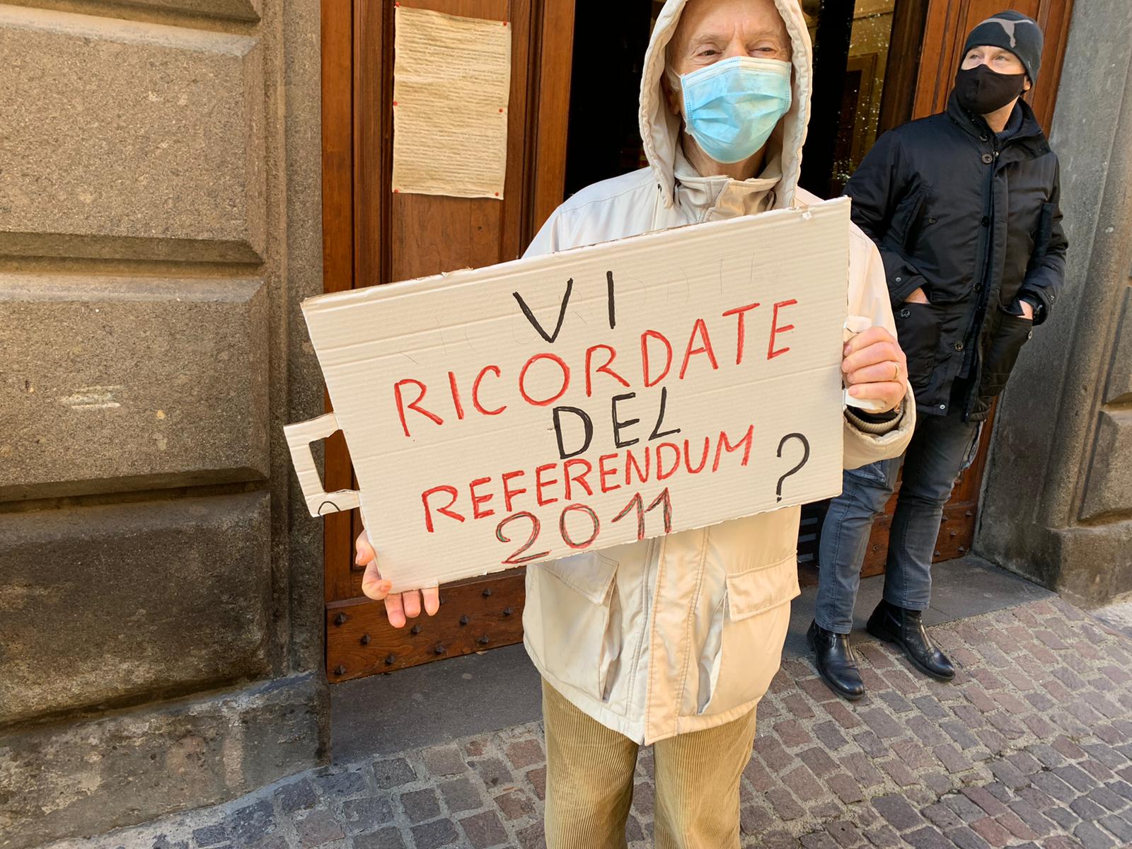 All’esterno del palazzo della Provincia, sede dell’assemblea, si è svolto un presidio del comitato ”Non ce la beviamo”, per dire no alla stangata e noi ad ipotesi di privatizzazione del servizio.
