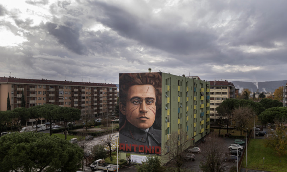 In occasione di due importanti anniversari, il 130esimo della nascita di Antonio Gramsci e il 100esimo della fondazione del Partito Comunista Italiano, di cui Gramsci fu co-fondatore e ideologo. Firenze ricorda il politico e intellettuale con un murale di 213 metri quadri realizzato dall’artista Jorit alla periferia della città, sulla parete di un edificio di edilizia popolare, tra novembre e dicembre scorsi.