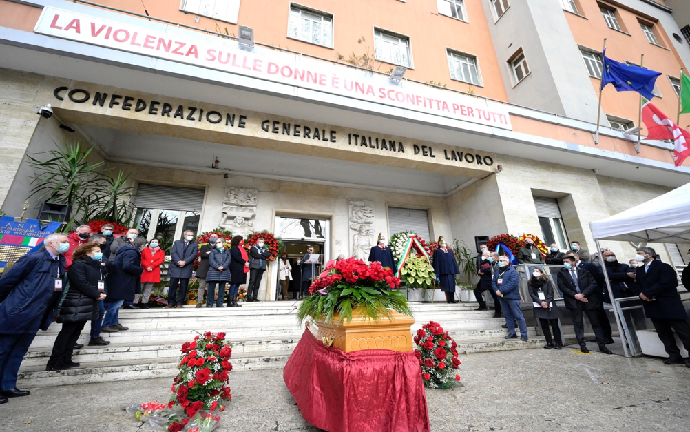 Alla cerimonia erano presenti tra gli altri il presidente della Camera Roberto Fico, il ministro dell’Economia, Roberto Gualtieri e iI segretario generale della Cgil Maurizio Landini