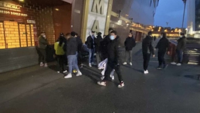 Poco distanziamento, mascherine abbassate o assenti. La folla di giovani accorsi per la presentazione del nuovo modello di scarpe da ginnastica fa arrabbiare i coetanei che protestano per rientrare a scuola in sicurezza e contro i mezzi pubblici affollati