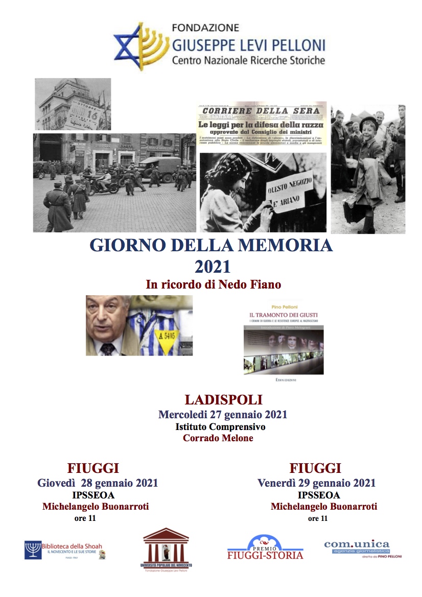 Saranno le scuole di Ladispoli e di Fiuggi ad ospitare gli incontri promossi dalla Fondazione Levi Pelloni per il Giorno della Memoria 2021.