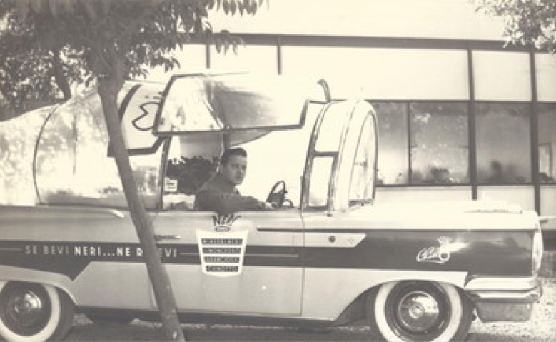 Tornando a suo nonno Pietro Neri,  anche lui, ai suoi tempi, era un uomo abbastanza innovativo e originale. Se non sbaglio ideò, curiose macchine  a forma di bottiglia come slogan promozionali.