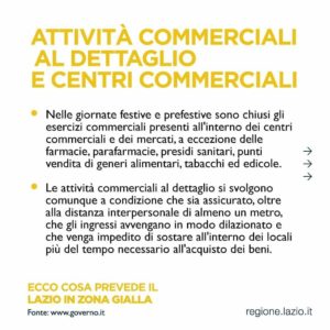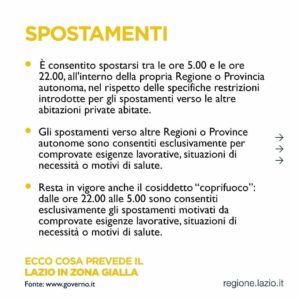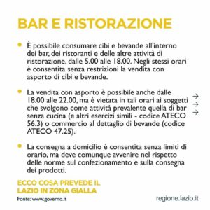 Da lunedì 1 febbraio il Lazio torna zona gialla. Ecco le principali regole.