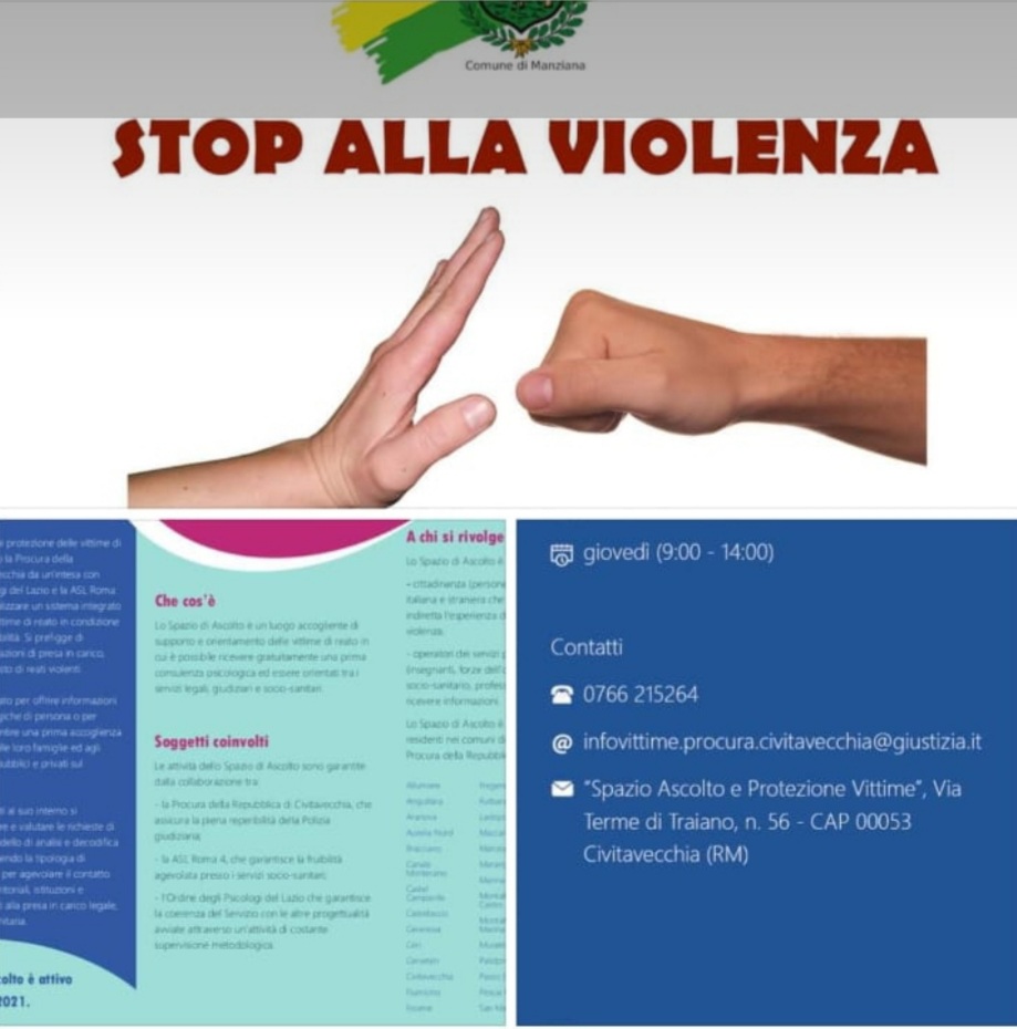 Dal mese di Febbraio Manziana ha messo a disposizione di tutti i suoi cittadini lo “Spazio ascolto e accoglienza” per le vittime di violenza e abusi.
