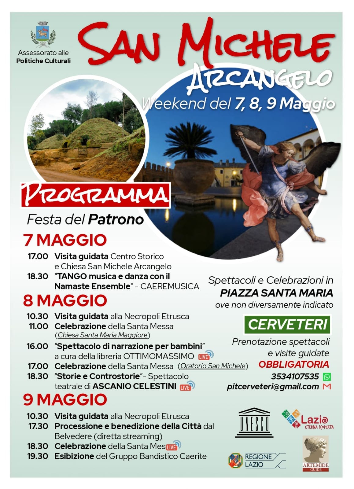 Cerveteri festeggia San Michele Arcangelo, Santo Patrono della città. Dopo l’interruzione forzata dello scorso anno, dovuta al lockdown, l’Amministrazione comunale di Cerveteri, propone tre giorni di appuntamenti culturali e visite guidate all’interno del Centro Storico.