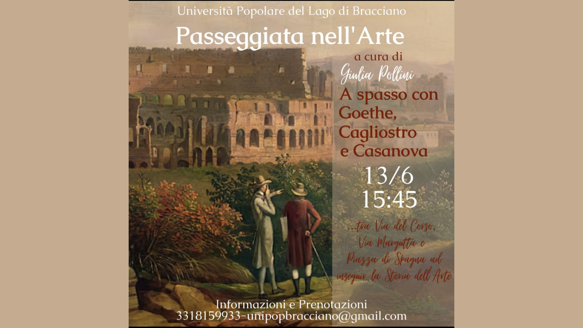 Domenica 13 giugno L’Università Popolare del Lago di Bracciano propone un’affascinante passeggiata nella città eterna, nei luoghi cari a Goethe, Cagliostro e Casanova.