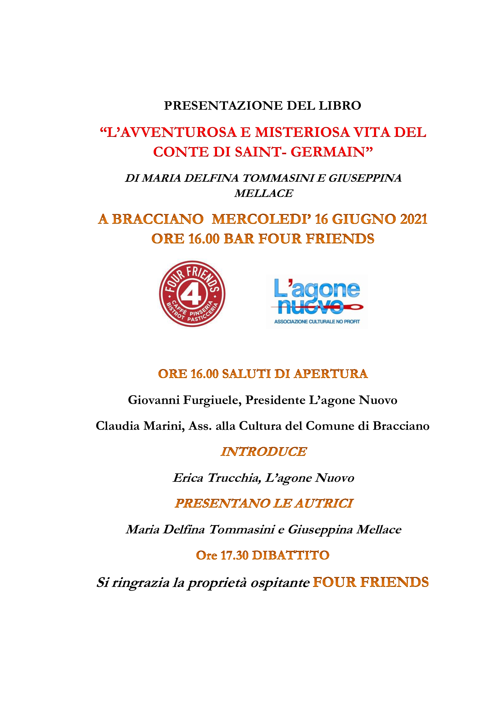 Si comincia con un evento speciale. Una sorprendente chiacchierata con Maria Delfina Tommasini e Giuseppina Mellace, autrici del libro “L’avventurosa e misteriosa vita del Conte di Saint – Germain”.