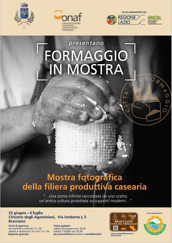 “Formaggio in mostra” al chiostro degli Agostiniani in via Umberto I, a Bracciano. Da oggi 25 giugno al 4 luglio da non perdere la mostra fotografica promossa dalla filiera produttiva casearia con il patrocinio del Comune di Bracciano, dall’Onaf – Organizzazione Nazionale Assaggiatori Formaggi in collaborazione con l’agenzia regionale Arsial e con la Regione Lazio. L’Onaf ha insignito Bracciano del titolo di Città del formaggio e questa mostra è una delle diverse iniziative che puntano alla promozione e valorizzazione della cultura casearia che affonda le radici nel territorio braccianese con produttori e allevatori d’eccellenza. Un viaggio attraverso le tradizioni, “una storia infinita raccontata da uno scatto, un’antica cultura proiettata su supporti moderni”.