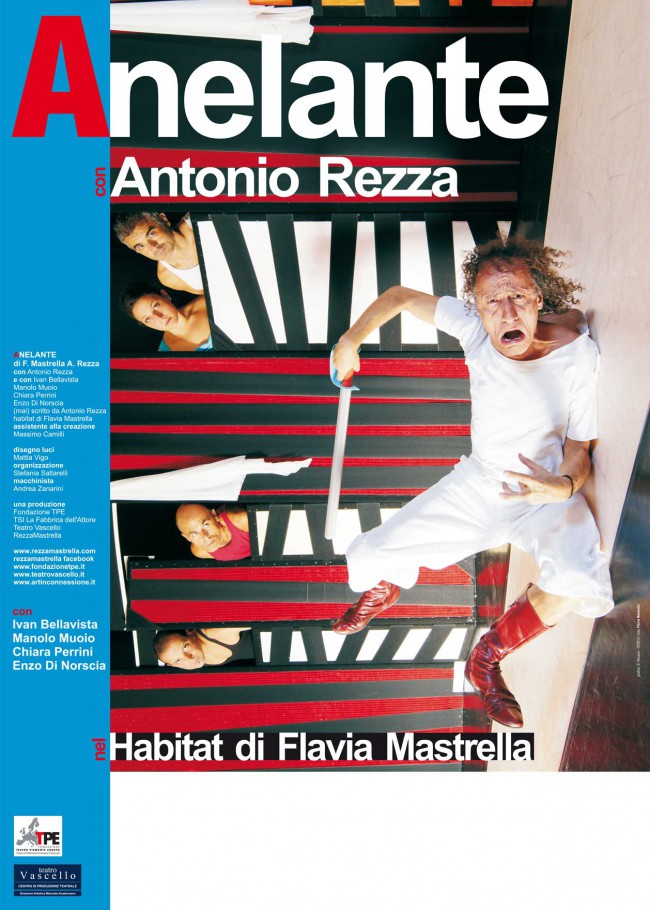 Sabato 7 agosto questi due artisti straordinari, dopo il successo dello scorso anno, tornano a Cerveteri con un nuovo spettacolo, “ANELANTE”. Uno spettacolo pungente, provocatorio, che punta a suscitare momenti di riflessione, anche amara, nello spettatore che si troverà avvolto in un susseguirsi di movenze, di espressioni, che solamente l’estrosità di due personaggi mai banali come Rezza e Mastrella sono capaci di regalare al pubblico.