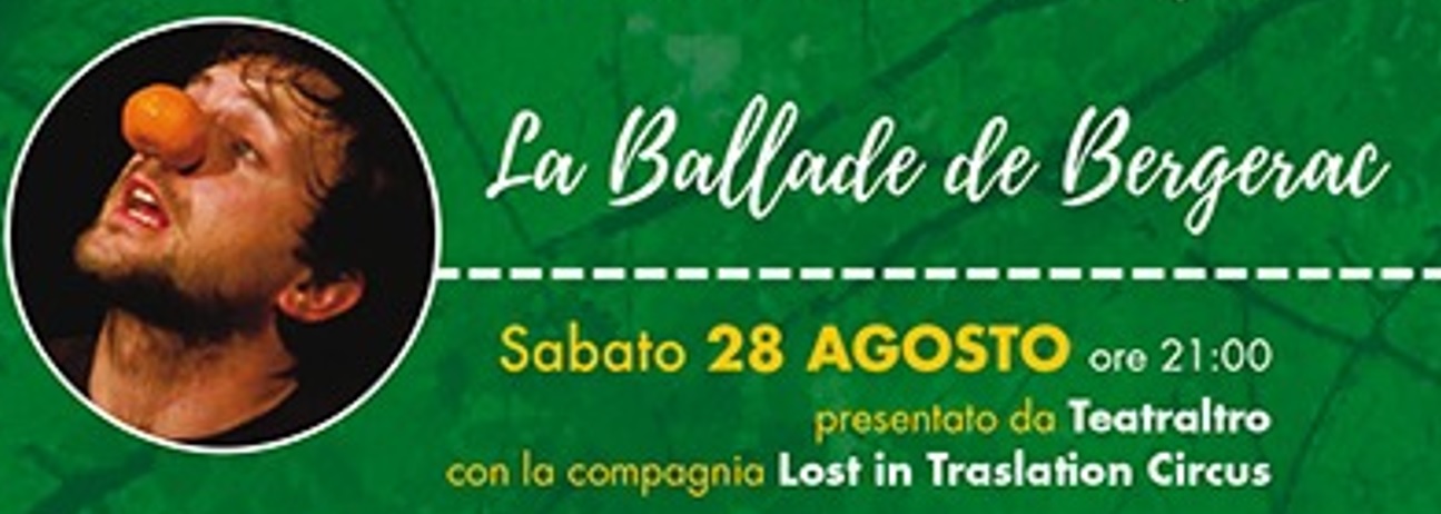 Sabato 28 alle 21 spazio alla “Ballade de Bergerac”, presentata da Teatraltro con la compagnia “Lost in Translation Circus”, nata nel 2008 da un’idea di alcuni diplomati alla Scuola di Circo di Londra