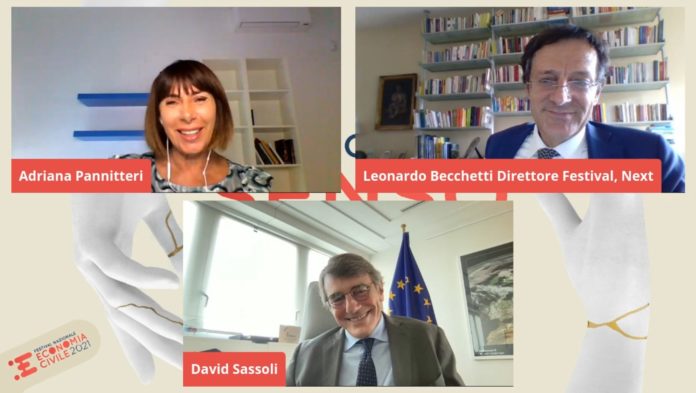 La presentazione – avvenuta in maniera telematica sulle piattaforme social Facebook e YouTube del Festival – ha visto come ospite d’eccezione il Presidente del Parlamento Europeo David Sassoli, che ha dialogato assieme al Direttore del Festival e cofondatore di NeXt (Nuova Economia X Tutti) Leonardo Becchetti su opportunità da cogliere e rischi da evitare, nell’ottica di uno sviluppo inclusivo e realmente sostenibile sfruttando, in Italia ed in Europa, il PNRR.