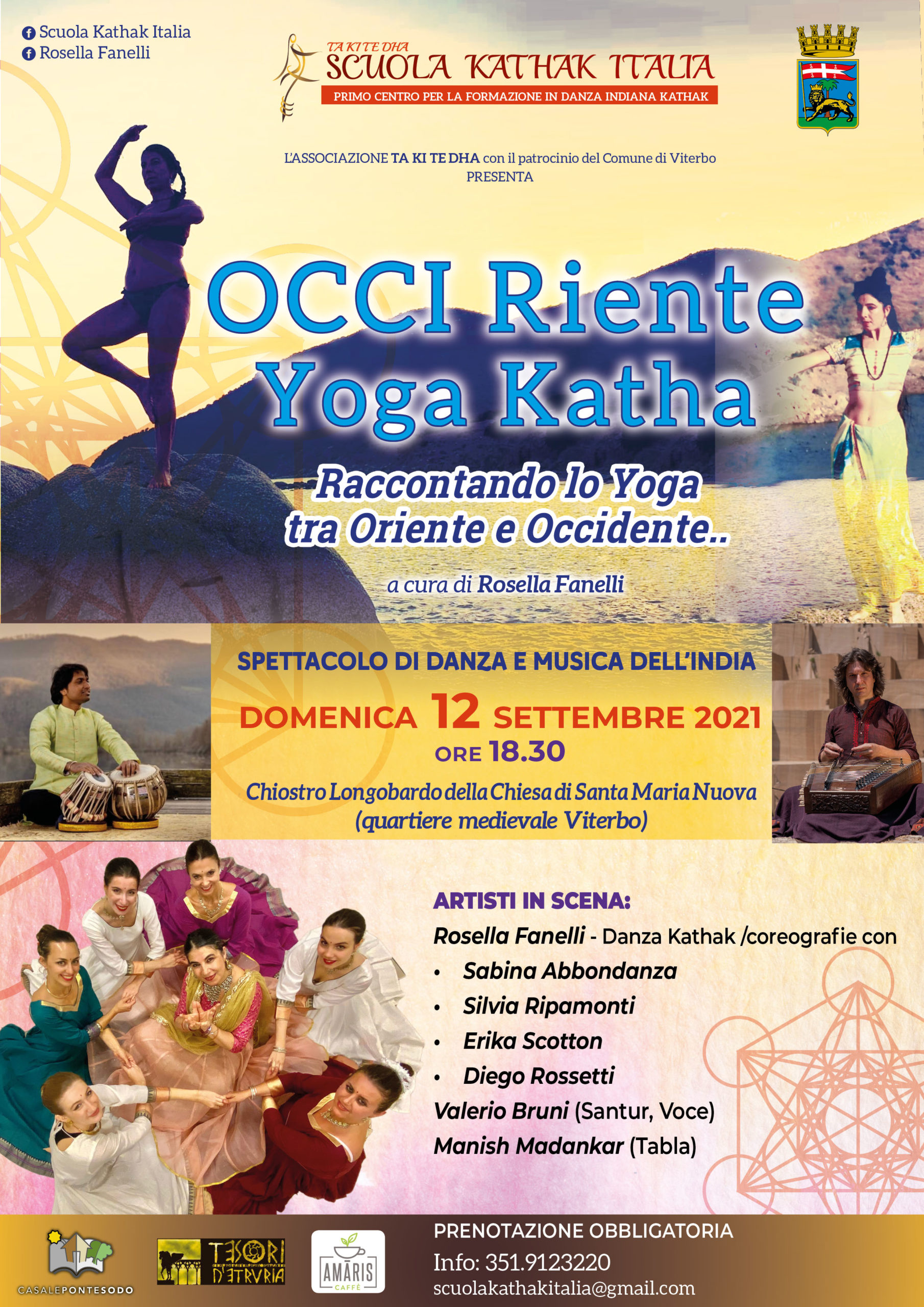 Terminata con successo la prima parte di “Occi-riente Yoga Katha”, progetto che ha visto protagonista la pratica yoga all’aperto presso Casale Ponte Sodo a Viterbo condotta dalla maestra Rosella Fanelli, è il momento per la seconda parte: una performance di teatro-danza indiana kathak, musica dal vivo e interazioni di elementi contemporanei, in programma domenica 12 settembre 2021 alle ore 18.30 presso il chiostro di Santa Maria Nuova, in Via Santa Maria Nuova (traversa di Via San Lorenzo) alle ore 18.30 (si consiglia di arrivare alle ore 18.00).