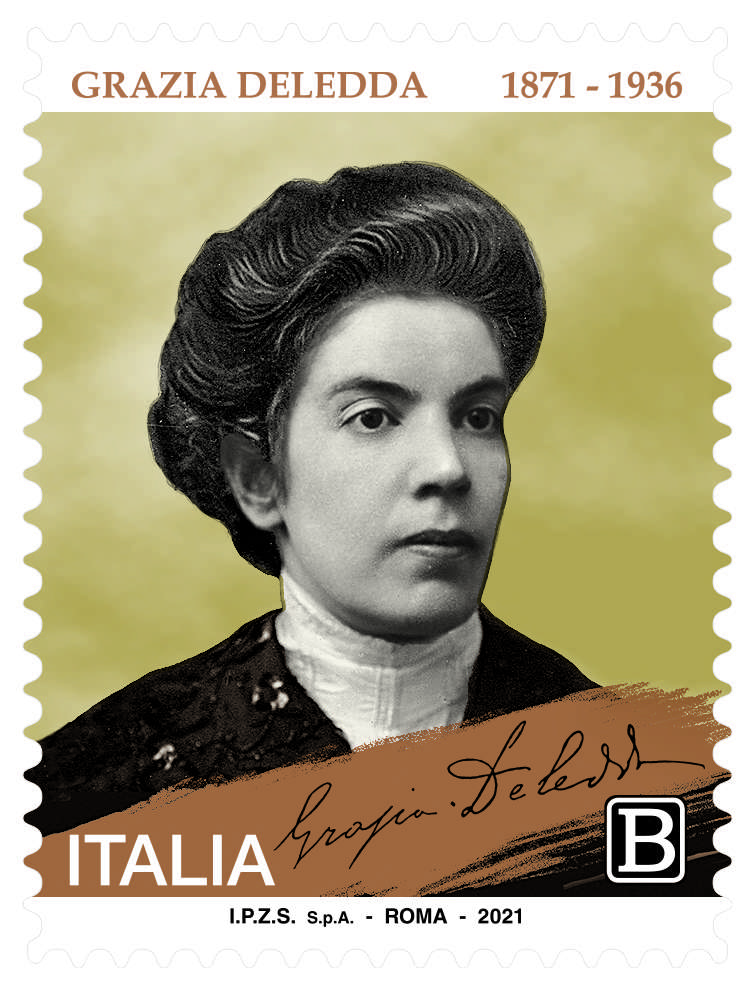 Emesso oggi un francobollo commemorativo di Grazia Deledda, nel 150° anniversario della nascita, al valore della tariffa B pari a 1,10€. La vignetta raffigura un ritratto di Grazia Deledda delimitato in basso da una banda in cui è riprodotta la firma autografa della scrittrice italiana. Completano il francobollo la leggenda “Grazia Deledda”, le date “1871 – 1936”, la scritta “Italia” e l’indicazione tariffaria “B”.