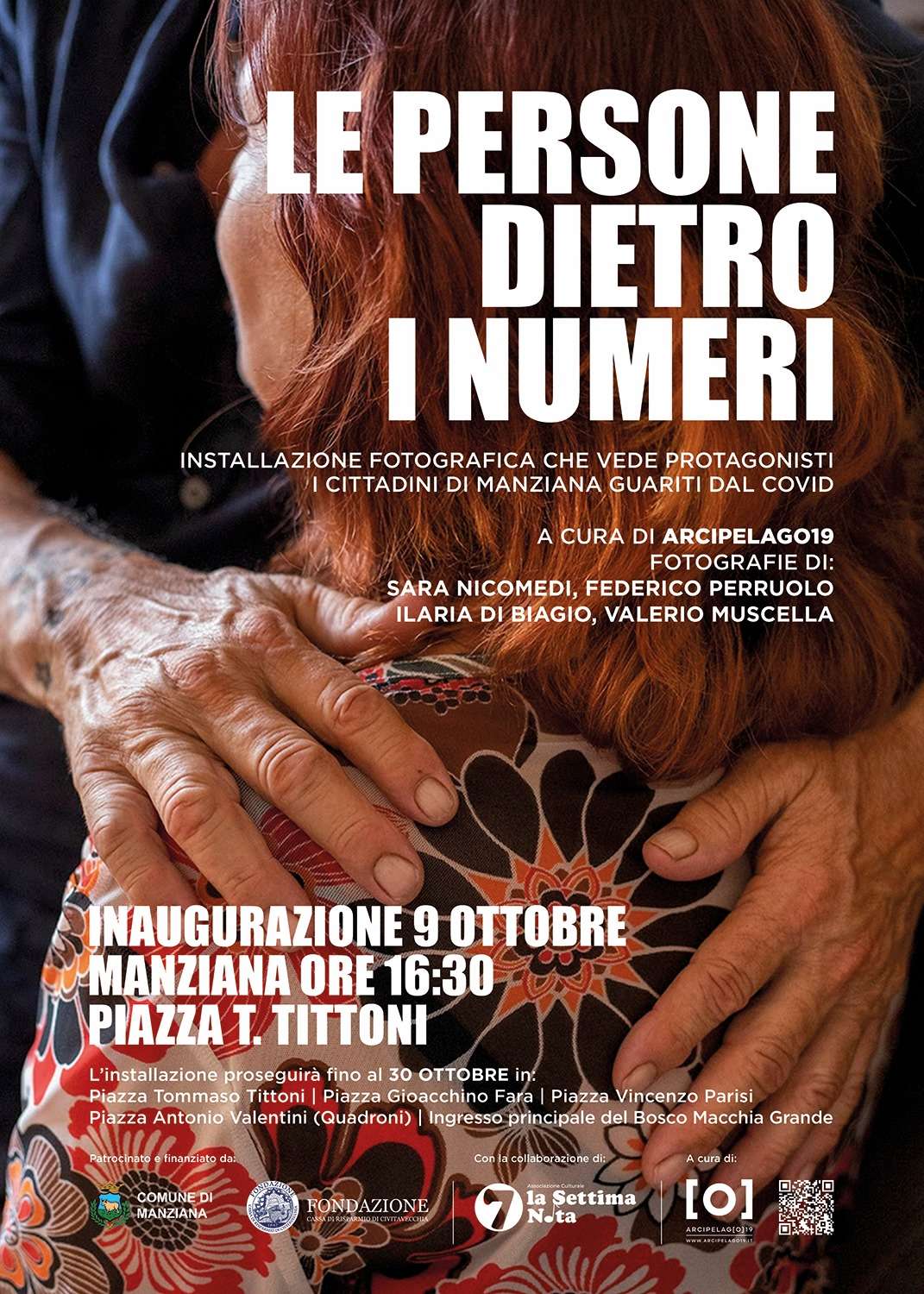 Sabato 9 ottobre, alle ore 16:30 a Manziana (Rm), in Piazza Tittoni, si terrà l’inaugurazione dell’installazione fotografica “Le persone dietro i numeri”, progetto socio culturale dedicato alle persone guarite dal Covid, patrocinato e finanziato dal Comune di Manziana e dalla Fondazione Cariciv, curato dal collettivo fotografico Arcipelago-19, ideato dalla fotografa manzianese Sara Nicomedi, in collaborazione con Sara Frignani ed al quale ha contribuito attivamente l’Associazione La Settima Nota.
